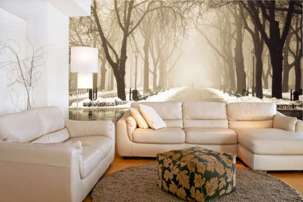 Если вы хотите не чуть-чуть, а глобально расширить пространство помещения, выбирайте сюжет с явно выраженной перспективой. Это может быть уходящая вдаль улица города или парковая аллея. Или вид морского побережья, где ландшафт просматривается на многие километры вдаль. Глядя на такую стену можно поверить, что дорога настоящая, а из окна, так похожего на настоящее, можно высунуть руку и дотронуться до листьев растущего во дворе клена.