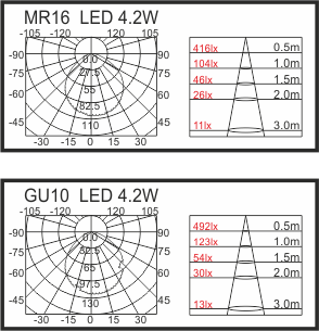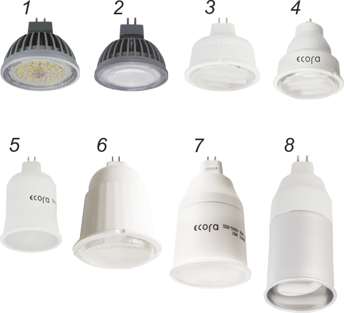 Наиболее эффективны светодиодные лампы-рефлекторы (те, которые светят в одну сторону) – замена галогенок MR16 GU5.3, GU10. Светодиоды изначально светят в одну сторону, поэтому не возникает потерь света (до 15-25%) при отражении, которые неизбежны в любых других лампах-рефлекторах.