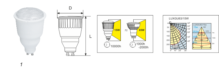 Лампа G63 – увеличенный аналог рефлектора GU10.